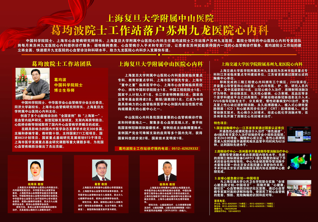 1.專(zhuan)傢(jia)們(men)診:華山(shān)醫(yī)院神經(jing)外科(ke)著名(míng)專(zhuan)傢(jia)周六上午在(zai)蘇州九龍醫(yī)院神經(jing)外科(ke)出專(zhuan)傢(jia)們(men)診。預約電(dian)話(hua):62629752
